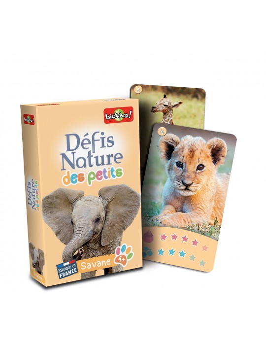 Défis nature des petits permet aux plus jeunes de découvrir les bébés animaux de la savane. Pariez et comparez le poids ou le nombre de bébés à la naissance pour collecter toutes les cartes du jeu et remporter la partie.