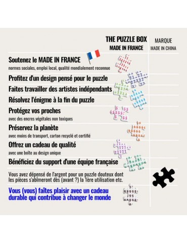 Conseils, image modèle taille réelle (49 x 68 cm), numérotation des pièces par zone. Vous pouvez même faire des puzzles de 100 pièces puis les assembler.