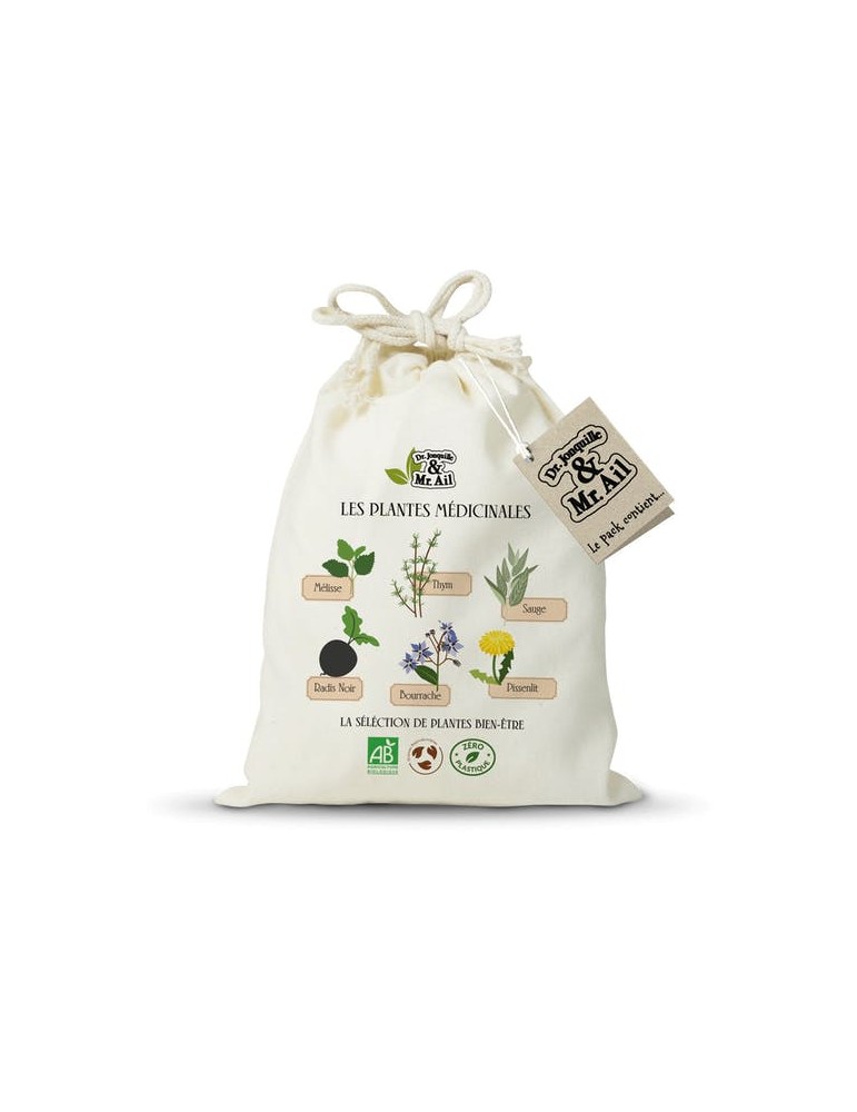 Made in Nantes, graines AB et reproductibles, papier et bois certifié PEFC, sac en coton bio, entreprise engagé pour le zéro plastique.