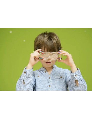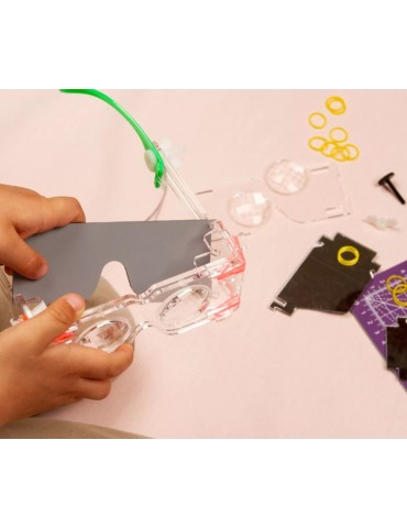 Après avoir assemblé les lunettes ainsi que le boitier qui va avec, tu vas pouvoir placer un jeu de lentilles optiques et de miroirs.