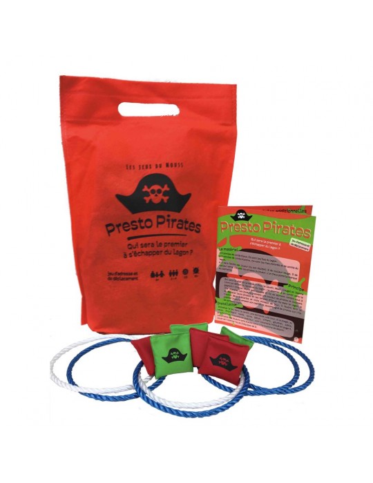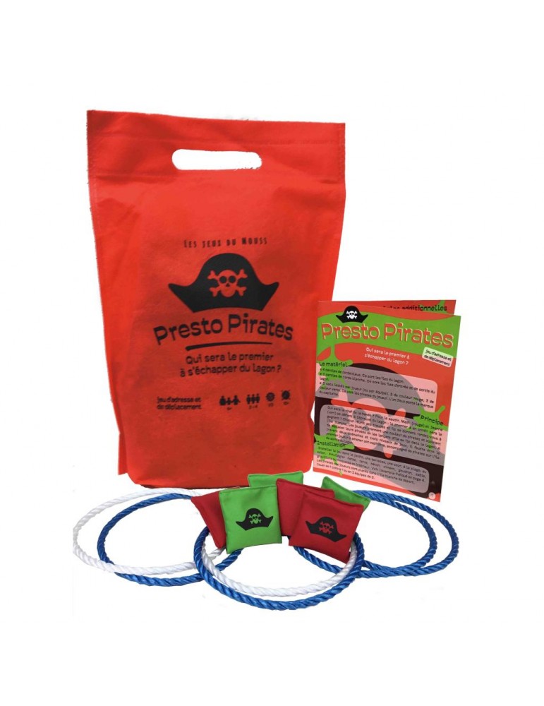Presto Pirates est un jeu de lancer et un jeu d'adresse. C'est aussi un jeu d’extérieur multi-surface : herbe, béton, ciment, gravier, terre, sable…. Tous les terrains ou presque lui conviennent. Il est nomade comme tous les jeux du Mouss, on l’emporte donc facilement avec soi pour des randonnées, des pique-niques, à la plage et en forêt….