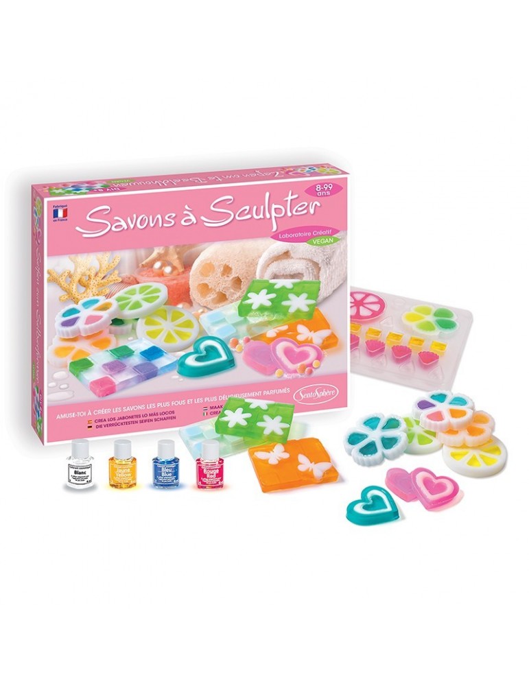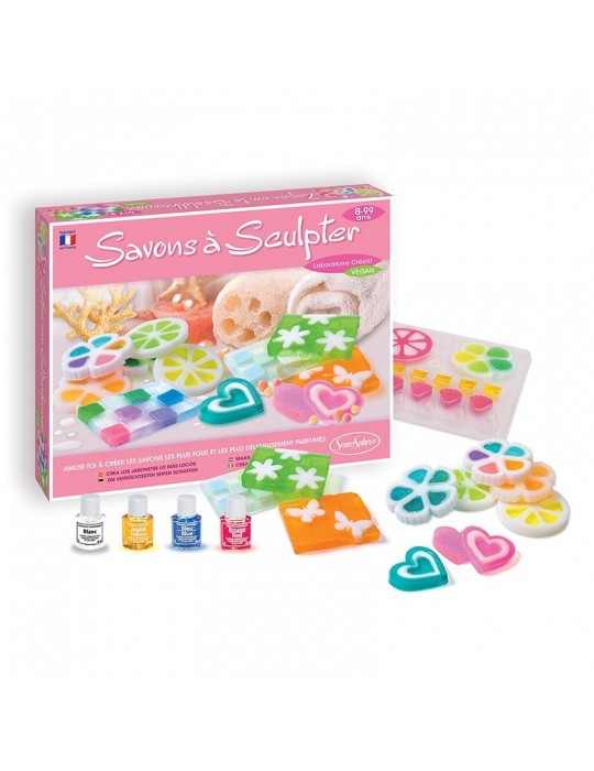 Ce coffret permet ainsi de créer une infinité de savons en jouant sur la transparence et l’opacité, sur les couleurs, les formes et les senteurs.