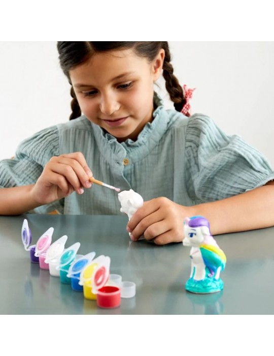Avec ce coffret créatif complet, les enfants vont pouvoir makomouler et peindre les 5 licornes avec les 7 pots de peintures gouaches nacrées ! Créer des moments magiques