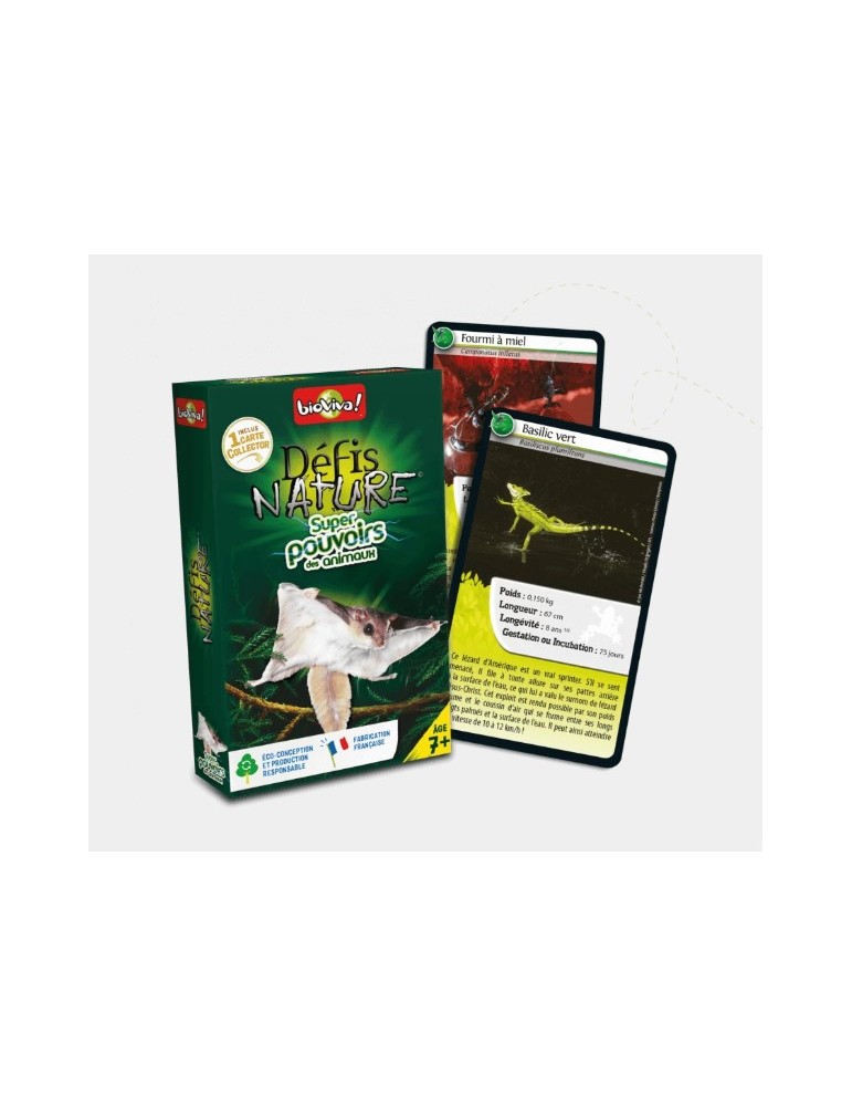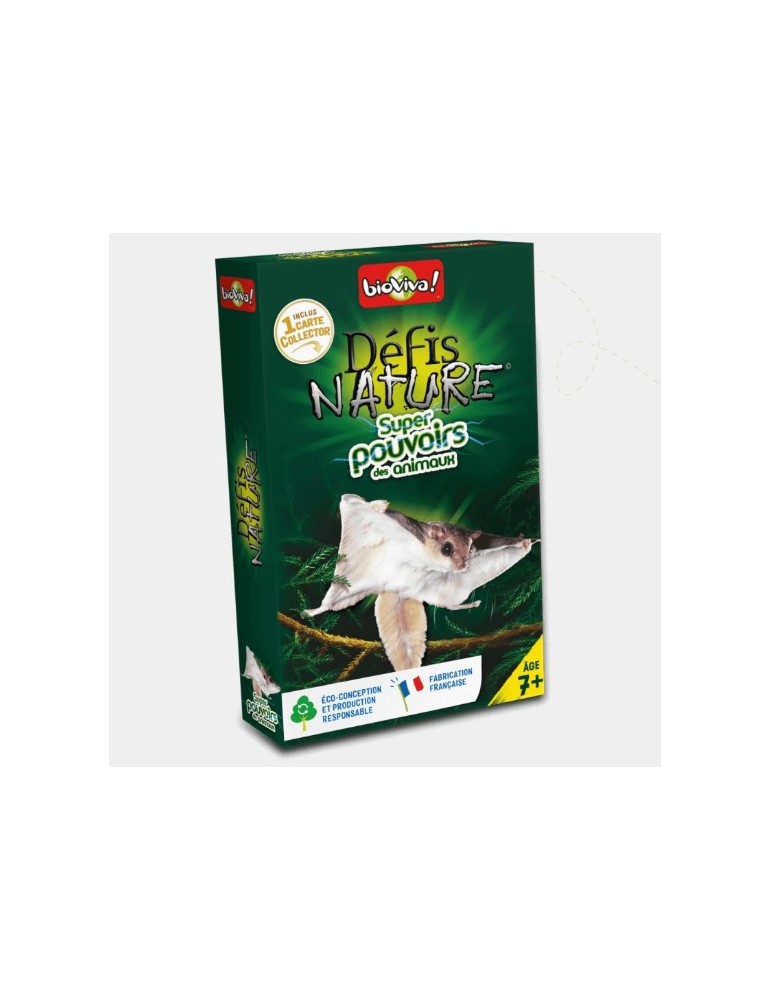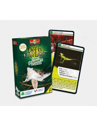 Le principe de Défis Nature - Super pouvoirs des animaux est simple : les enfants de 7 ans et + parient sur les points forts des animaux. Le joueur qui possède la plus forte caractéristique remporte les cartes des autres joueurs. Le premier à collecter toutes les cartes du jeu gagne la partie.