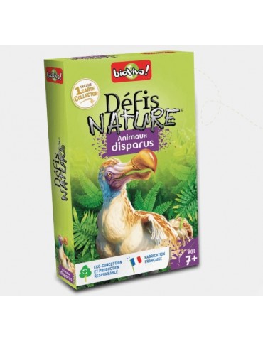 Le principe de Défis Nature - Animaux disparus est simple : les enfants de 7 ans et + parient sur les points forts des animaux. Le joueur qui possède la plus forte caractéristique remporte les cartes des autres joueurs. Le premier à collecter toutes les cartes du jeu gagne la partie.