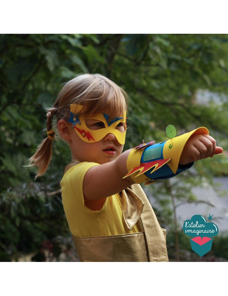 Grâce au pas à pas illustré, fabrique et customise ton masque et ta manchette de super-héros en papier mousse et autocollants. Dans le magazine, tu découvres ton nom de super-héros et un dossier complet sur ces personnages fantastiques : Qui sont-ils ? D'où viennent)ils ? Qui sont les super-vilains ?
