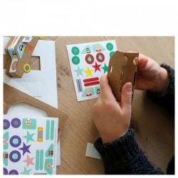 En assemblant simplement le papier au carton, on fabrique une jolie voiture vintage que chaque enfant pourra ensuite décorer avec les gommettes illustrées par My Name Is Simone. Les plus inventifs pourront également embellir les voitures à l'aide de crayons de couleurs, de feutres…