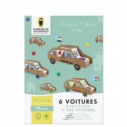 Contenu : 6 voitures à fabriquer + 6 planches de 20 stickers chacune