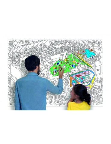 Un espace artistique sans limites pour colorier seul ou à plusieurs, à déplier au sol, à accrocher au mur ou à utiliser en nappe.