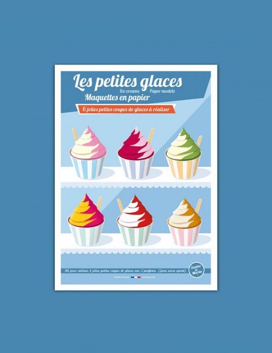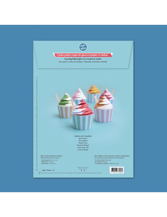 Ce kit permet de réaliser 6 jolies petites coupes de glaces en papier + 6 porte-nom + 6 bâtonnets.