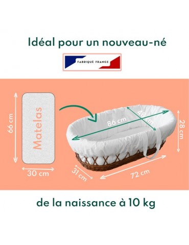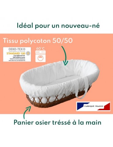 Ce couffin en osier est fait à la main à Montauban, en France.